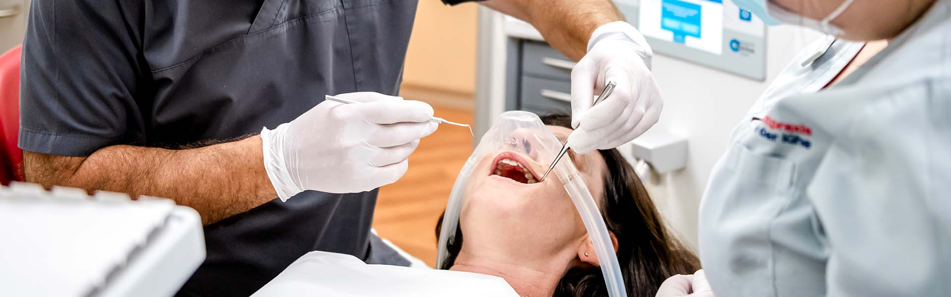 Für die meisten zahnärztlichen Behandlungen ist eine örtliche Betäubung ausreichend. Als zusätzliche Option bieten wir die Sedierung mit Lachgas, die vor allem für Patienten mit Zahnarztangst häufig eine gute Möglichkeit für eine entspannte Behandlung ist.