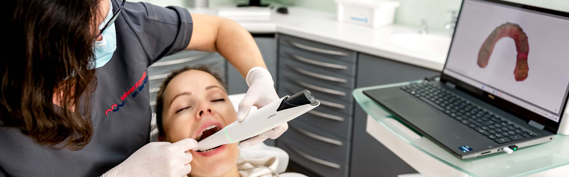 In unserem praxiseigenen Dentallabor nutzen die Zahntechniker moderne CAD/CAM-Technik (computergestütztes Konstruieren und Herstellen), um ästhetischen, passgenauen Zahnersatz aus hochwertiger Vollkeramik zu fertigen. Ein weiterer Vorteil für Sie: Auf den herkömmlichen Abdruck können wir verzichten – dank unseres digitalen Intraoralscanners, den wir z. B. auch für die Herstellung von Aufbissschienen oder Alignern verwenden.